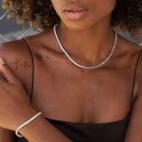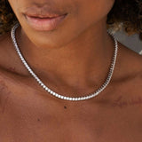 Timeless elegance meets everyday sophistication. Our Round Cut Tennis Necklace features a seamless row of brilliant-cut stones, each meticulously set in polished white gold for maximum sparkle and durability. Designed to rest gracefully along the neckline, this piece transitions effortlessly from day to night — whether worn solo for a refined statement or layered for a luxe, modern look. Match it to our delicate TENNIS BRACELET